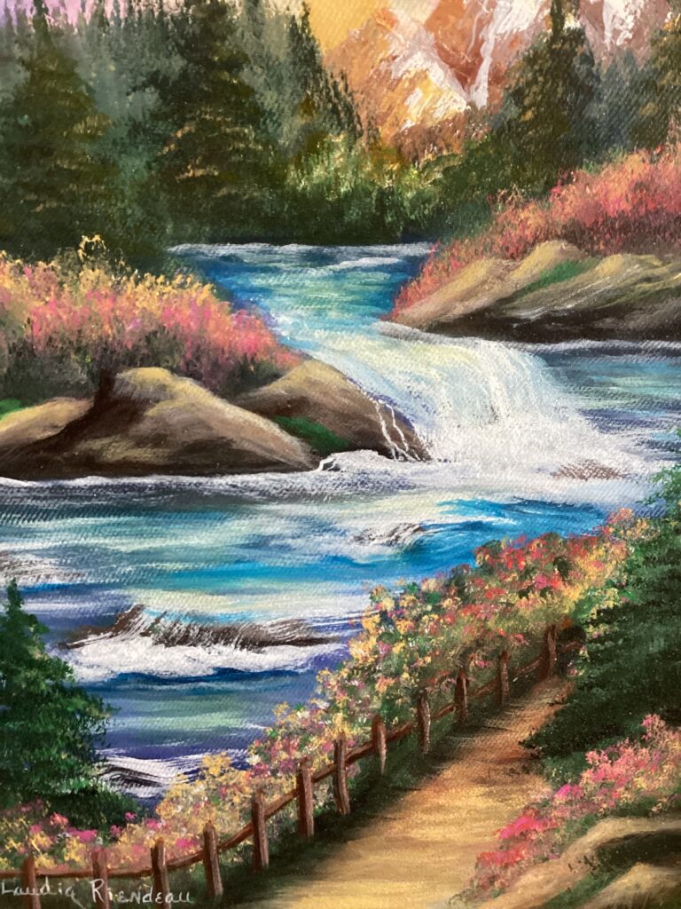 J’ai eu le privilège d’être présidente du regroupement des Peintres Unis de Waterloo, où j’ai partagé ma passion pour les arts visuels. Je travaille avec diverses techniques : aquarelle, huile, acrylique et pastel, et je suis également couturière. Aujourd’hui, je suis heureuse d’avoir réintégré le groupe des Peintres Unis de Waterloo et de participer à ses activités ; c’est ainsi que j’ai présenté mes œuvres lors de l’exposition L’Art d’aimer en août 2025. Chaque création est pour moi une occasion d’exprimer émotions et couleurs, et de célébrer la beauté sous toutes ses formes.